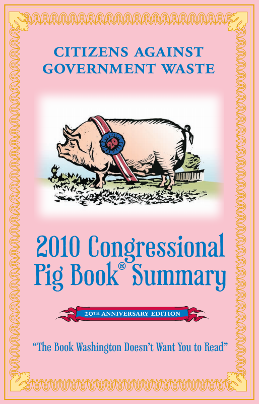 The Congressional Pig Book is CAGW’s annual compilation of the pork-barrel projects in the federal budget. A “pork” project is a line-item in an appropriations bill that designates tax dollars for a specific purpose in circumvention of established budgetary procedures. To qualify as pork, a project must meet one of seven criteria that were developed in 1991 by CAGW and the Congressional Porkbusters Coalition.