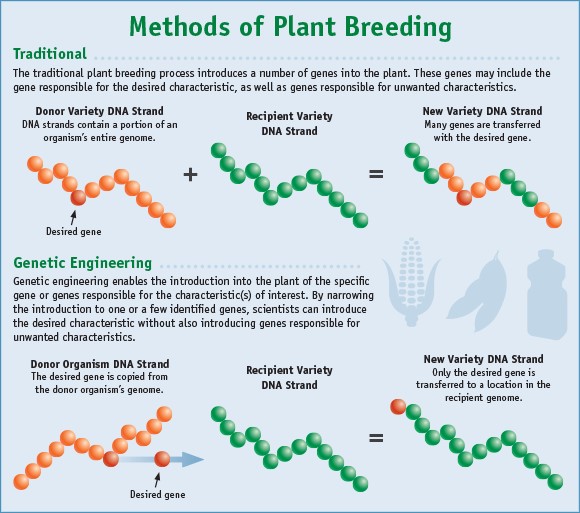 The FDA website has a graph that shows the difference between traditional breeding and one that uses genetic engineering.