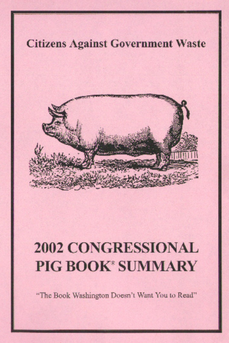 The Congressional Pig Book is CAGW's annual compilation of the pork-barrel projects in the federal budget. To qualify as pork, a project must meet one of seven criteria that were developed in 1991 by CAGW and the Congressional Porkbusters Coalition.