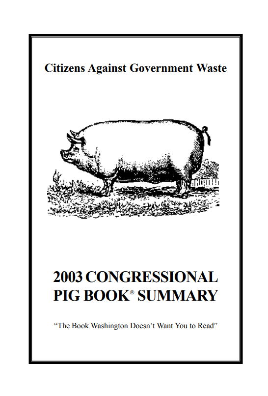 The Congressional Pig Book is CAGW's annual compilation of the pork-barrel projects in the federal budget. To qualify as pork, a project must meet one of seven criteria that were developed in 1991 by CAGW and the Congressional Porkbusters Coalition.